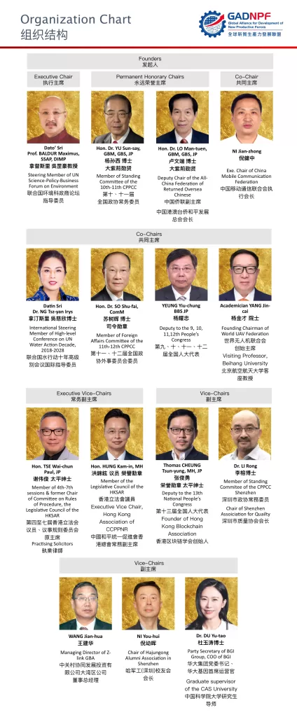 - 拿督斯里吳罡豪教授,SSAP,聯合國環境科政商論壇指導委員,世貿聯合基金總會創辦人、全球併購基金執行主席、國際標量波量子研究院發起人