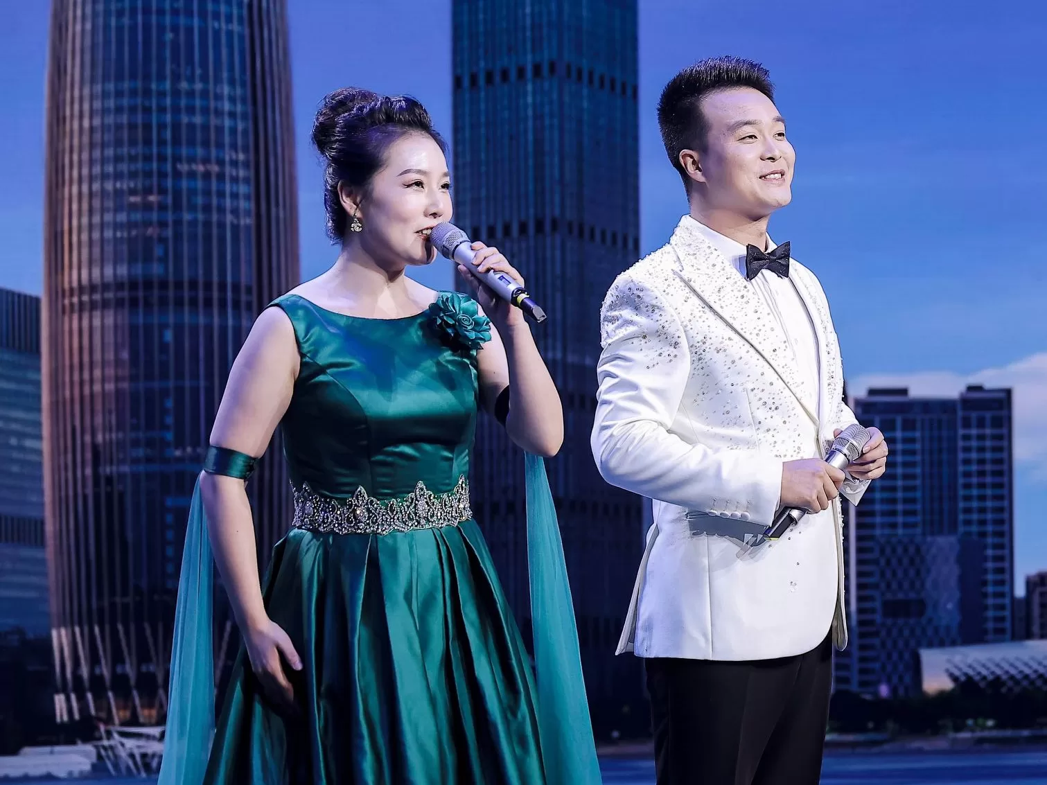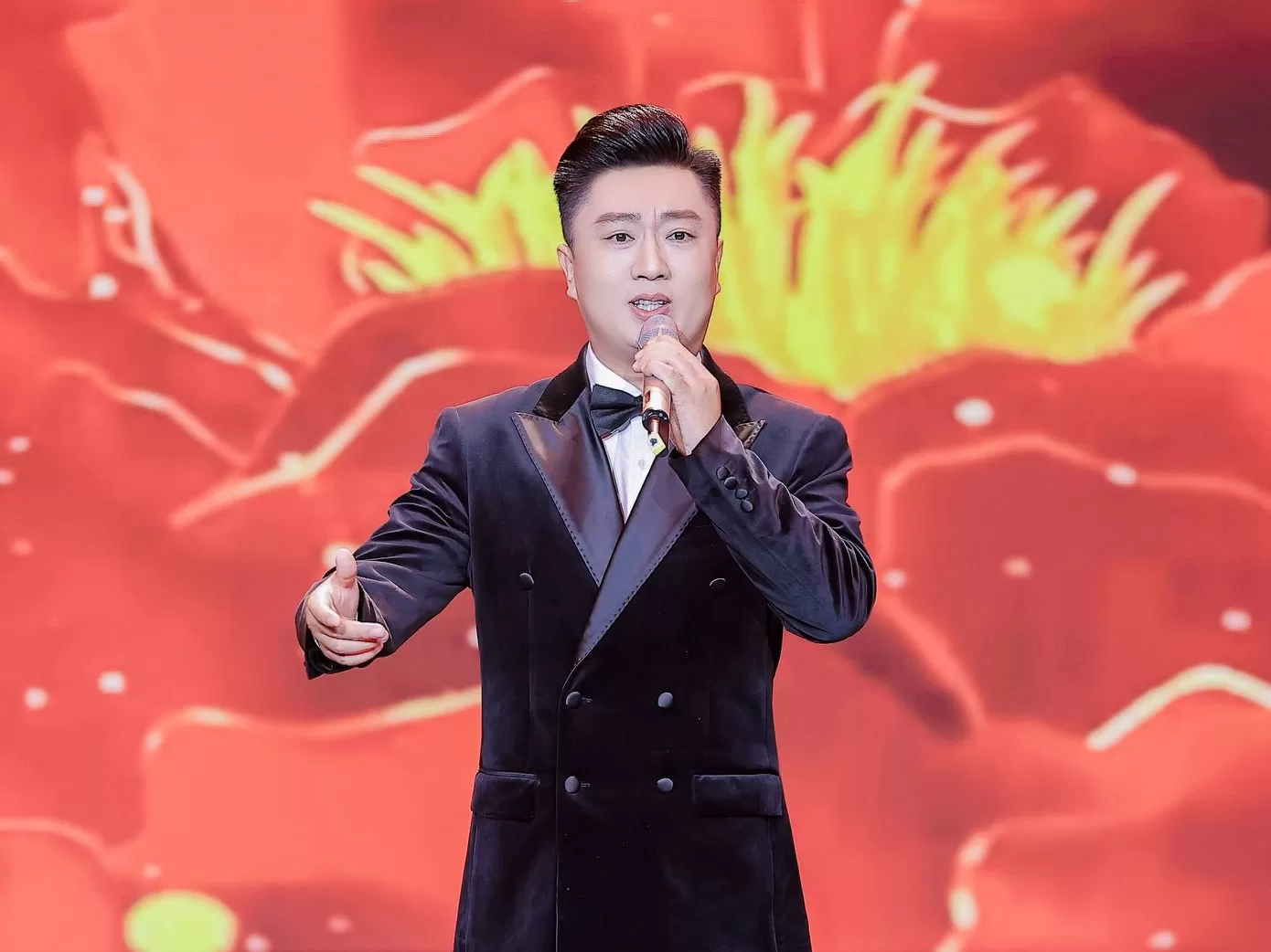 中國著名男高音歌唱家、北京歌劇院國家一級演員趙國強的登場,將整場音樂會推向高潮。他傾情獻唱經典曲目《祖國我為你祝福》,其音色渾厚而富有穿透力,高音通透明亮,中低音沈穩深情,將歌曲中對祖國的深情祝福與赤子之心詮釋得淋灕盡致,贏得現場觀眾經久不息的掌聲。