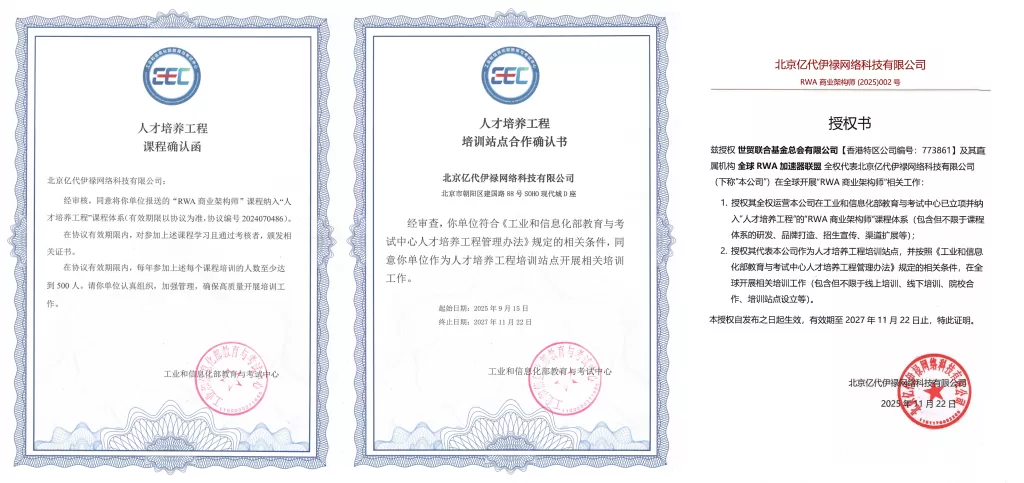 近日,工業和信息化部教育與考試中心正式批准“RWA商業架構師”納入該中心人才培養工程課程體系。該課程系由全球RWA加速器聯盟成員發起,旨在培養具備資產數字化架構能力的專業人才,為推動產業數字化轉型提供堅實的人才支撐。
