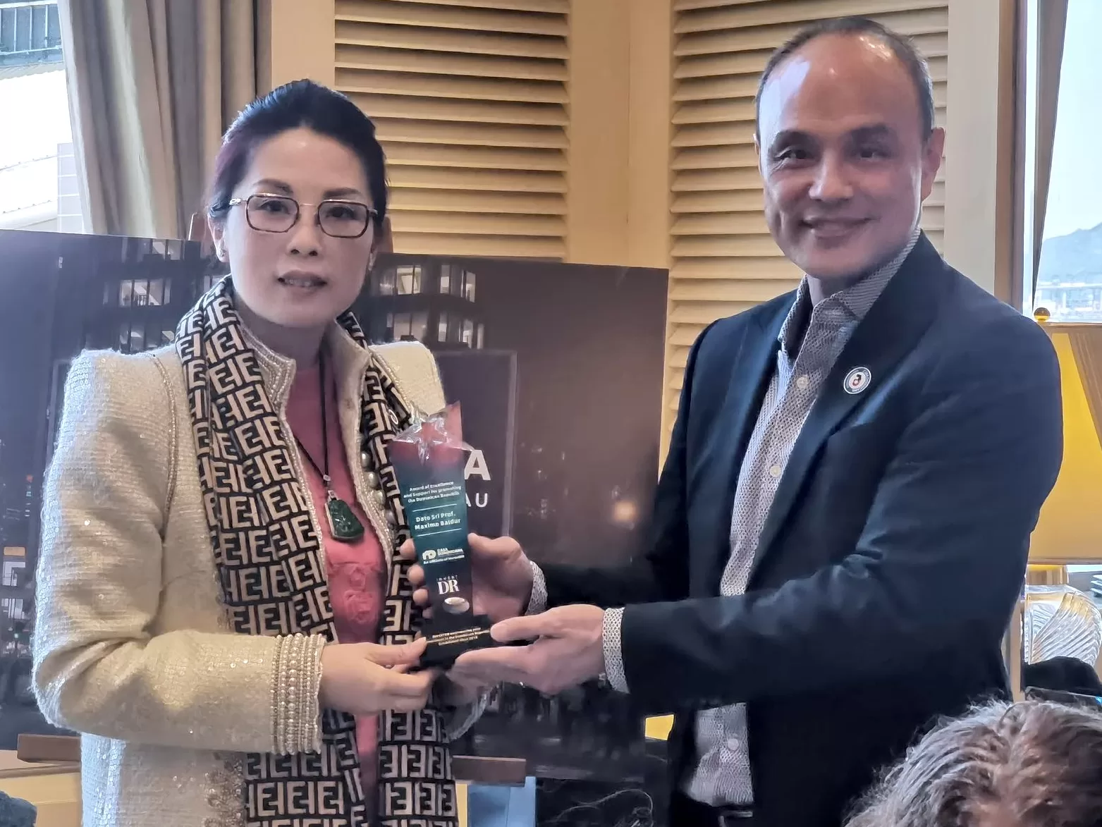 日前,由多米尼加共和國駐港澳總領事館與中國多米尼加商會 InvestDR(多米尼加投資推廣)共同發起的”Casa Dominicana(多米尼加之家)”在香港啟動。世貿聯合基金總會中央議會主席、中國多米尼加商會(CDGCC)執行會長拿汀斯里吳慈欣博士受邀出席並代表拿督斯里吳罡豪教授接受“推廣多米尼加卓越支持獎”表彰。