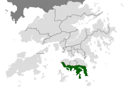 南區位於香港島南部(綠色部份),東起大浪灣,西起薄扶林。當中包括香港仔、鴨脷洲、鋼綫灣、黃竹坑、壽臣山、深水灣、淺水灣、赤柱、舂坎角、大潭及石澳等地。