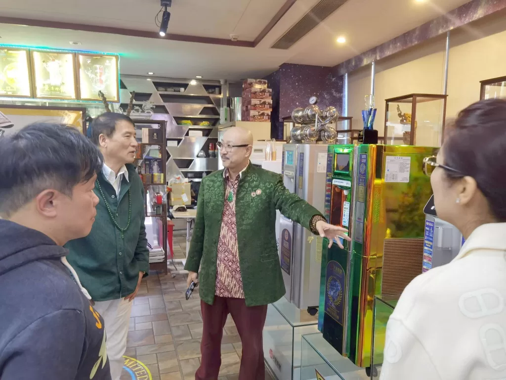 參訪過程中,空氣製水系統發明人拿督斯里吳罡豪教授 SSAP向葉小鋼院士介紹了空氣製水技術的核心原理、研發歷程及應用場景。據悉,空氣製水作為一項創新環保技術,無需依賴地下或地表水源,可通過冷凝空氣中的水汽並經過多重淨化處理,轉化為符合世界衛生組織標準的安全飲用水,具有不受地域限制、節能低碳、無二次污染等優勢,既能緩解缺水地區飲水困境,也能為城市公共飲水、工業生產、綠色農業等領域提供可持續解決方案。目前,天泉鼎豐集團已研發出多用途空氣製水設備,構建起涵蓋設備銷售、飲品生產、生態產業園建設等多領域的產業佈局,並與空氣製水科技有限公司等多方合作打造空氣水生態產業園,推動技術與新能源、新農業等產業深度融合。