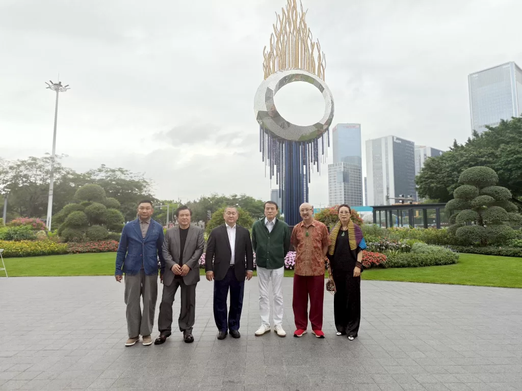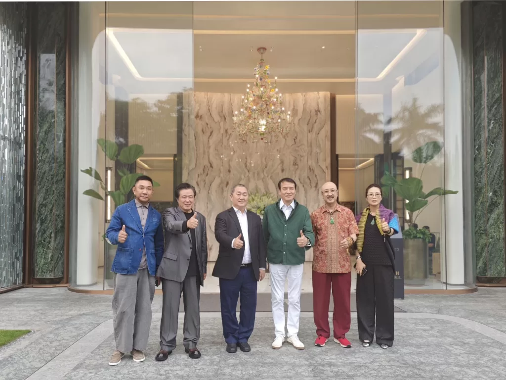 中國文聯副主席葉小鋼院士(右3),世貿職合基金總會創辦人拿督斯里吳罡豪教授 SSAP (右2),世貿職合基金總會中央議會主席拿汀斯里吳慈欣博士(右1),第十屆全國工商聯副主席、香江集團主席劉志強(左3),中國藝術研究院教授張大墨(左2),銀誼資本創始人冼偉(左1)在香江1號