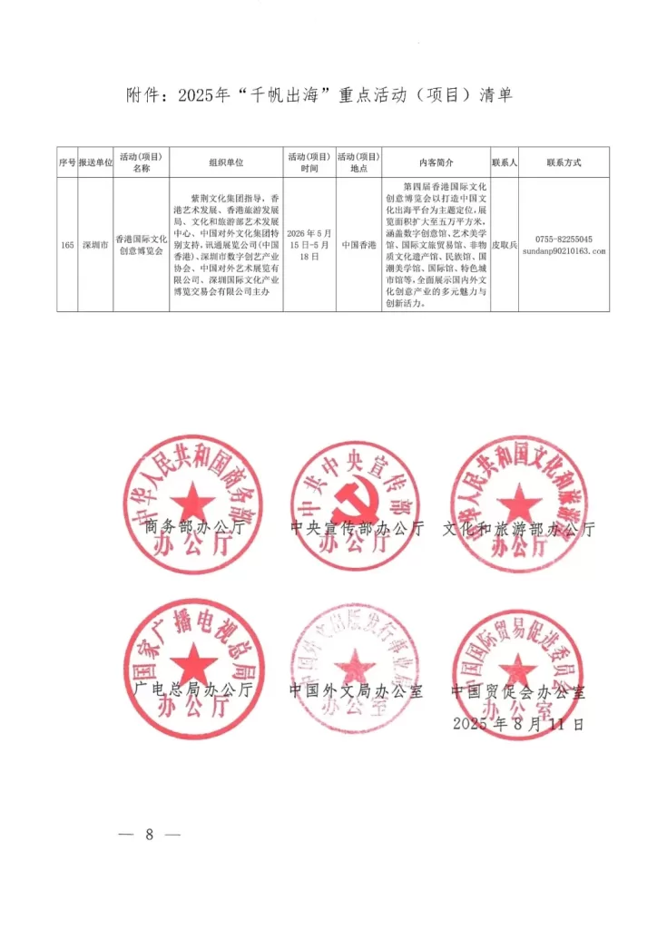 據悉,第四屆香港國際文化創意博覽會將於2026年5月15日至18日,在香港亞洲國際博覽館隆重舉行,本屆特設8大主題場館涵蓋數字創意館、文旅視聽館、文化產業綜合館、國際IP文創潮玩展、主賓省館、大灣區文化藝術館、國際文旅貿易館及多彩演藝館,另外還將首次開設香港國際AI電影節、現代水墨展年展、嘉年華等一系列豐富多元的主題活動,致力構建一個具有國際影響力、產業推動力與文化輻射力的綜合性文創盛會,為中國文化“走出去”提供重要支點。
